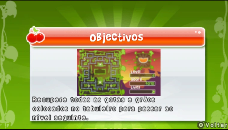É um jogo puzzle com uma pegada de Pac Man.